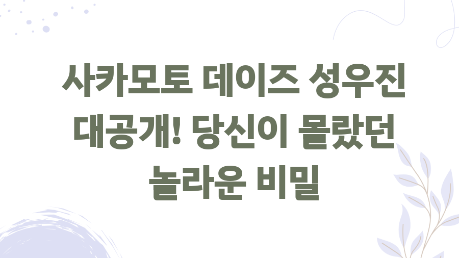 오늘은 여러분의 기대감을 더욱 충족시켜 줄 '사카모토 데이즈'의 성우진을 자세히 알아보는 시간을 갖도록 하겠습니다! 이 글을 통해 여러분은 일본판과 한국판 성우진을 모두 비교해 볼 수 있으며, 각 성우들의 특징과 매력까지 파악할 수 있을 거예요.